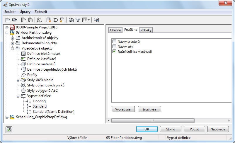 Správce stylů se zobrazí s aktuálním výkresem, rozbalený do stromového zobrazení.