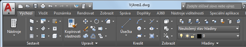 Pracovní prostor je navržen tak, aby umožňoval jednodušší a rychlejší vyhledávání a používání nástrojů a příkazů, které potřebujete mít po ruce při provádění úlohy.