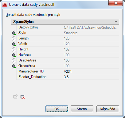 Použijte tento postup k úpravě dat sady ručních vlastností podle stylu, připojené k objektům, na které jsou ve výkresu externí odkazy (xref).