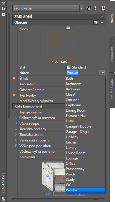 Definice seznamů jsou pojmenované seznamy pro prostory a zóny. Definici seznamu můžete připojit ke stylu prostoru nebo ke stylu zóny za účelem zajištění, že všechny prostory nebo zóny vložené s tímto stylem používají názvy ze seznamu. Definice seznamu lze vytvářet pro řadu účelů, například za účelem zajištění konzistentního pojmenování prostorů podle standardu budovy.