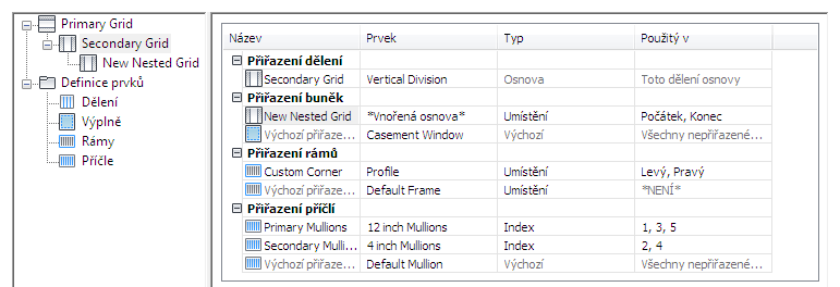 V seznamu přiřazení buněk se zobrazí nové přiřazení buňky.