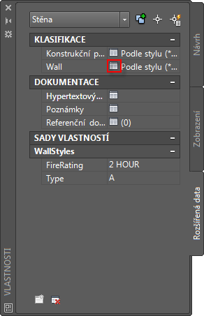 10. In the Properties palette, on the Extended Data tab, under Classification, click the button next to Wall.