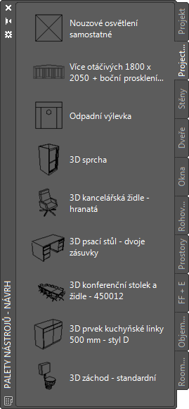Jakmile je paleta přidána do sady palet nástrojů, zůstane součástí sady a je dostupná vždy po spuštění aplikace AutoCAD Architecture toolset.