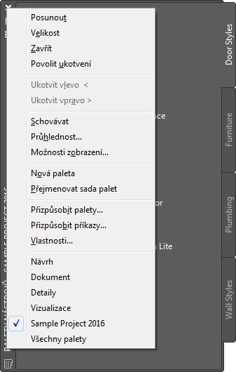 . - Jestliže skupina palet nástrojů projektu obsahuje nejméně jednu paletu, zobrazí se na seznamu dostupných skupin palet nástrojů a může být vybrána.