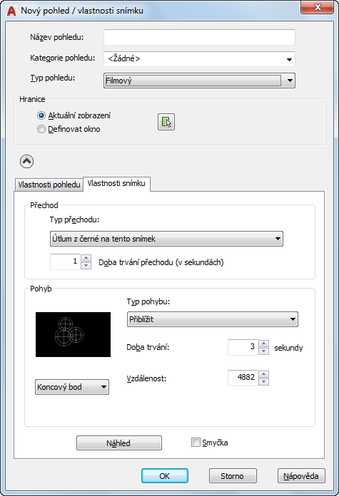 Definuje typ přechodu, který má být použit při přehrávání pohledu.