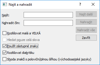 V případě nutnosti rozbalte dialog a nastavte možnosti vyhledávání a typu textu.