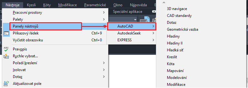 Chcete-li zobrazit panel nástrojů, klikněte na