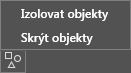 Kliknutím na tlačítko Izolovat objekty Hledat na stavovém řádku získáte přístup k možnostem skrytí objektů, izolování objektů a ukončení izolace objektů.