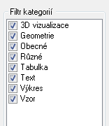 Extrahované vlastnosti jsou uspořádány do kategorií pro jednodušší filtrování. Chcete-li například zobrazit pouze vlastnosti náležící geometrii, vyberte filtr Geometrie na stránce Vybrat vlastnosti.