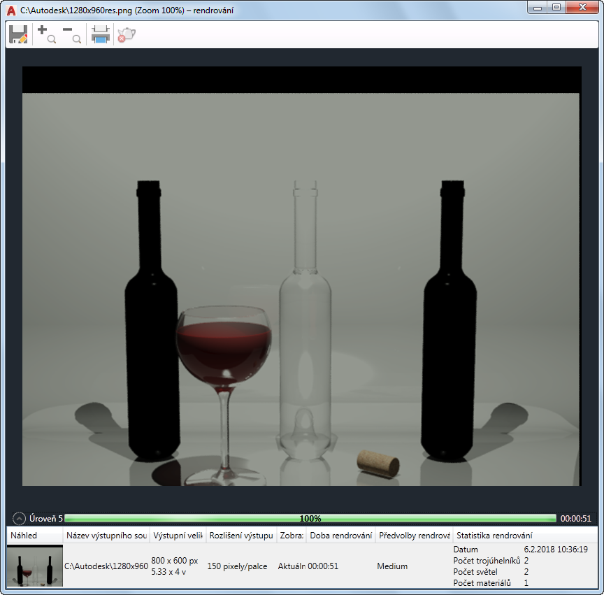 Rendrování z jakéhokoli výkresu se vždy zobrazuje v odpovídajícím okně pro rendrování.