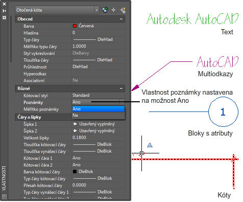 Objekty poznámek obsahují kóty, poznámky a další typy vysvětlujících symbolů nebo objektů, které jsou běžně používány k přidávání informací k výkresu.