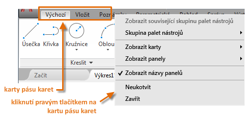 Poznámka: Do předchozího umístění vrátíte pás karet dvojím kliknutím na záhlaví pásu.