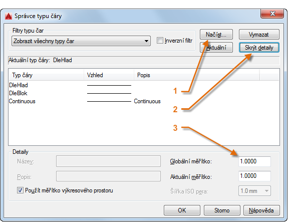 Tato akce zobrazí dialog Správce typu čáry.