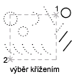 Vybere objekty uvnitř oblasti a objekty křížící oblast, přičemž oblast je definována pomocí dvou bodů. Křížení zobrazí čárkovaný nebo jinak zvýrazněný obdélník, aby se odlišil od obdélníku pro výběr okna.