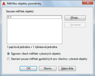 Určuje, že jsou v seznamu měřítek objektů zobrazena pouze měřítka, která jsou společná pro všechny vybrané objekty.