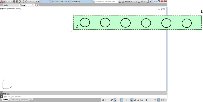 Se zapnutou proměnnou SELECTIONOFFSCREEN je možné nyní zahrnout do výběru objekty, které jsou mimo hlavní obrazovku (bod 1 na obrázku je mimo hlavní obrazovku).