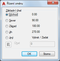 Nastavuje orientaci nulového úhlu. Následující volby ovlivňují zadávání úhlů, formát zobrazení a zadávání v polárních, válcových a sférických souřadnicích.
