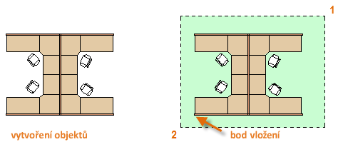 Všimněte si, že blok je při vkládání připojen ke kurzoru v označeném bodě. Toto umístění se nazývá bod vložení. Bod vložení je standardně bod počátku (0,0) původního výkresu.