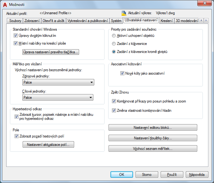 Řídí výchozí měřítko pro vkládání bloků a výkresů do výkresu.