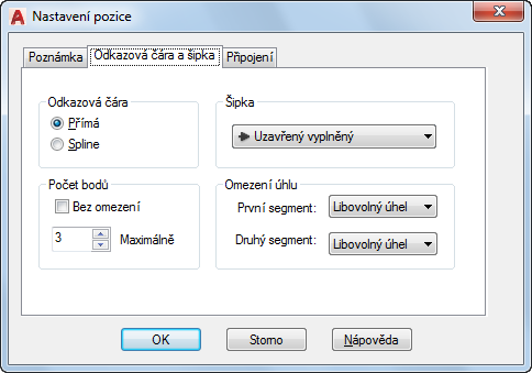 Nastavuje typ poznámky s odkazovou čárou. Vybraný typ změní výzvu příkazu RODKAZ při vytváření poznámky s odkazovou čárou.