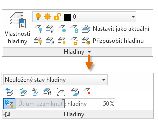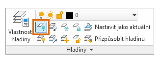 K přístupu k nástrojům hladiny můžete kromě Správce vlastností hladiny použít panel Hladiny na kartě Výchozí pásu karet.