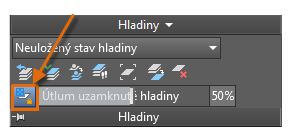 Funkce utlumení pro uzamknuté hladiny umožňuje snížit vizuální složitost výkresu při zachování vizuální reference a možností uchopení objektů.