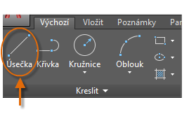 Úsečka je základní a nejběžnější objekt ve výkresech aplikace AutoCAD. Chcete-li nakreslit úsečku, klikněte na nástroj Úsečka.
