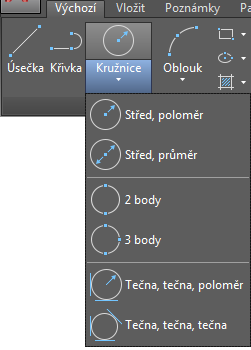 Další možnosti kružnice jsou k dispozici v rozevíracím seznamu: