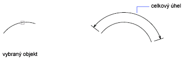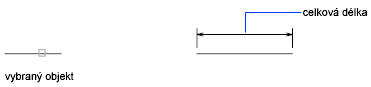 Nastavuje délku vybraného objektu zadáním celkové absolutní délky od pevného koncového bodu. Volba Celkem také nastavuje úhel rozevření vybraného oblouku o zadaný celkový úhel.