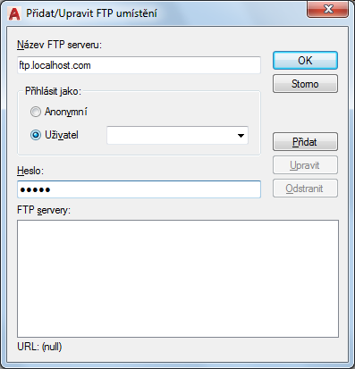 Určuje jméno serveru pro FTP umístění (například ftp.autodesk.com).