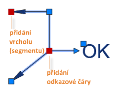 Nabídky uzlů se zobrazí, když přesunete kurzor nad šipku nebo uzly odkazové čáry. Prostřednictvím těchto nabídek lze přidat segmenty odkazové čáry nebo další odkazy.