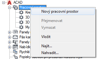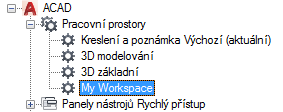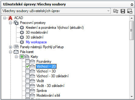 Nastavení aktuálního pracovního prostoru v editoru Upravit uživatelské rozhraní (CUI):