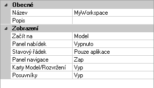 Na kartě Vlastní v podokně Uživatelské úpravy: <název souboru> klikněte na pracovní prostor, jehož vlastnosti chcete změnit.