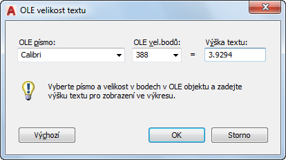 Měřítko OLE objektu je změněno automaticky a bude přizpůsobeno velikosti textu.