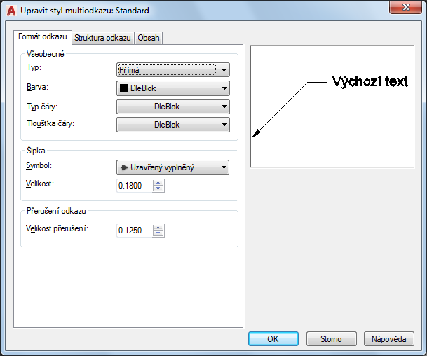 Karta Obsah (dialog Upravit styl multiodkazu)
