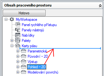 - V podokně Obsah pracovního prostoru klikněte na tlačítko Hotovo.