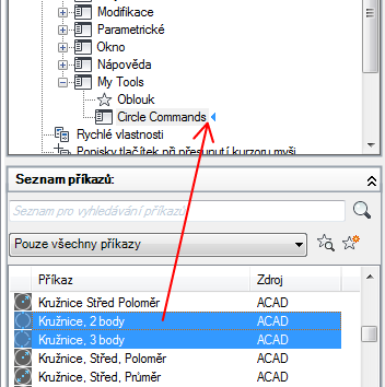 Přetáhněte příkaz, který chcete přidat do podnabídky, z podokna Seznam příkazů do podokna Uživatelské úpravy: