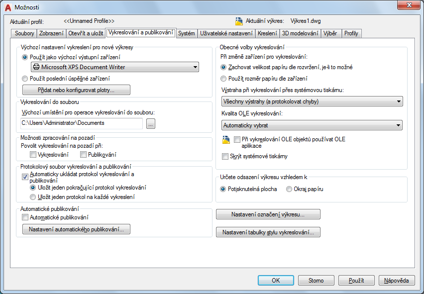 Určuje, zda se výkresy automaticky publikují do souborů DWF, DWFx nebo PDF. Můžete také určovat možnosti automatického publikování.