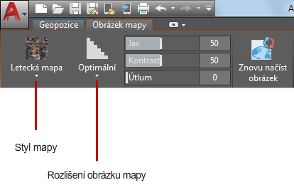 Při výběru obrázku mapy se na pásu karet zobrazí kontextová karta Obrázek mapy. Tuto kartu lze zobrazit, pouze pokud jste přihlášeni k účtu služby Autodesk.
