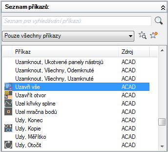 Na kartě Vlastní v podokně Seznam příkazů vyberte příkaz, k němuž chcete přidat štítek.