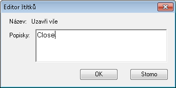 V dialogu Editor štítků zadejte do pole Štítky text, který představuje štítek pro příkaz.