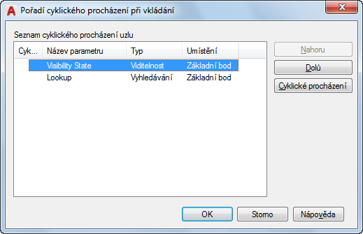 Při vkládání reference dynamického bloku do výkresu můžete pomocí klávesy Ctrl cyklicky procházet uzly, u kterých je v definici bloku zapnuto cyklické procházení. Vybraný uzel se použije jako bod vložení reference bloku.