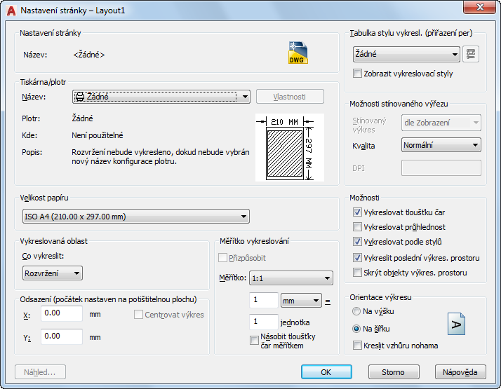Zadaná nastavení stránky budou uložena s rozvržením a mohou být použita na ostatní rozvržení nebo importována do jiných výkresů.