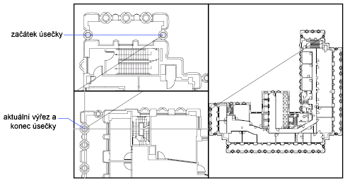 Ve velkých výkresech lze tento způsob využít při kreslení čáry z detailu v jednom rohu do detailu ve vzdáleném rohu.