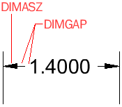 Nastavuje také mezeru mezi poznámkou a odkazem, která vznikla příkazem LEADER. Při zadání záporné hodnoty umístí proměnná DIMGAP rámeček kolem textu kóty.