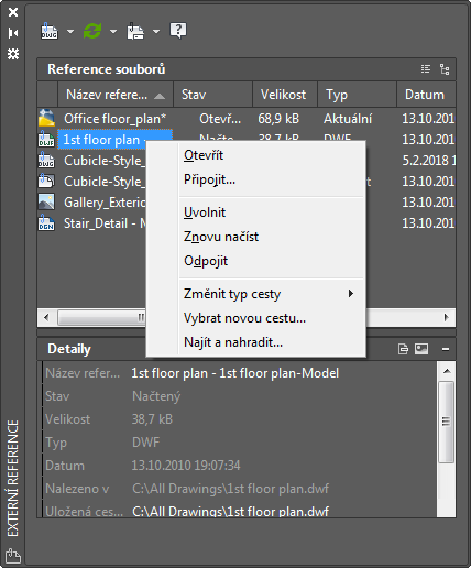 Jestliže má vámi vytvořená reference připojené externí reference nebo definice bloků, reference a její vnořené reference jsou zobrazeny v dialogu Editovat referenci, kde ji můžete vybrat. Vnořené reference jsou zobrazeny pouze tehdy, když je vybraný objekt součástí vnořené reference. Upravovat můžete najednou pouze jednu referenci. Jestliže upravujete referenci, která obsahuje objekty OLE, jsou objekty OLE zobrazeny, nelze je však upravovat.