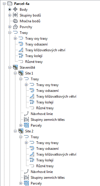 - Knihovna Trasy v rámci knihovny topologie nebo staveniště. Při umístění sem budou trasy interagovat s dalšími trasami a parcelami na staveništi. Pokud chcete, aby trasy vytvářely parcely z uzavřených regionů, ale nedělily existující parcely, přiřaďte trasy a parcely do samostatných stavenišť.