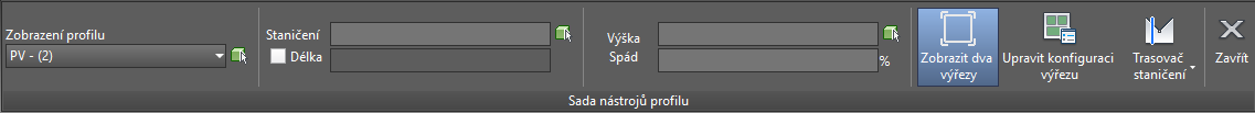 - Pomocí transparentního příkazu Sada nástrojů profilu můžete vytvořit geometrii profilu na základě známých parametrů. Pomocí příslušných možností zadejte jednu z následujících kombinací: staničení a výšku, staničení a spád, výšku a spád nebo délku a spád. Další informace naleznete v části Transparentní příkaz Sada nástrojů profilu.