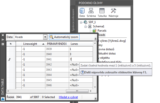 Připojili jste dříve vytvořený soubor SDF a přidali do schématu novou vlastnost. V Tabulce dat jste zadali hodnoty pro novou vlastnost.