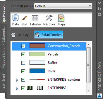 Kliknutím na položku Pořadí kreslení můžete změnit vzájemné překrytí hladin.
